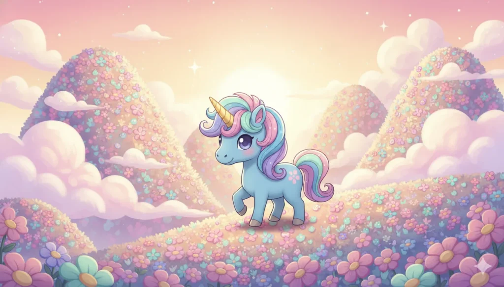 Había una vez, en un reino muy, muy lejano, un unicornio azul como el cielo. Tenía un cuerno dorado que brillaba como el sol.